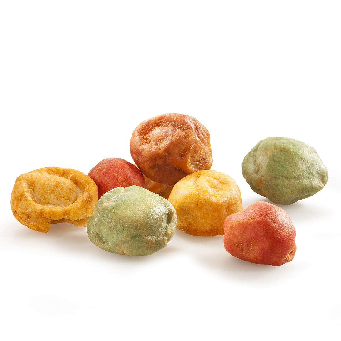 Επικαλυμένα φυστίκια σε σχήμα ραβιόλι με γεύση chili lemon, sichuan pepper, hot chili, kimchi, wasabi.