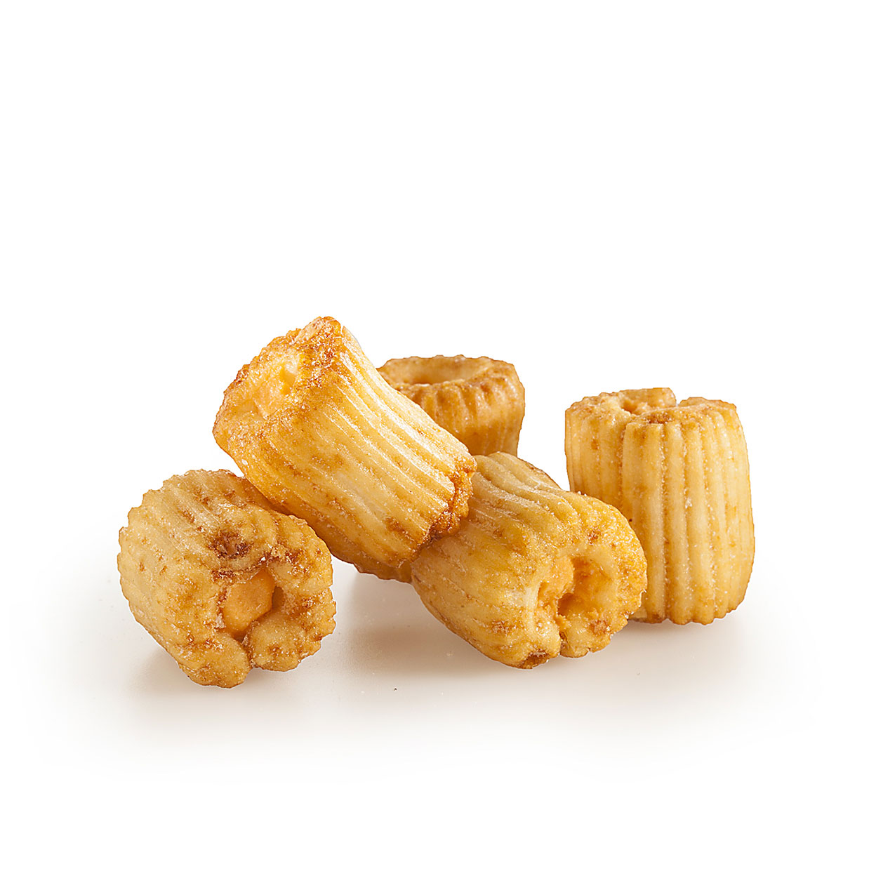 Ρολάκια από ελαφρώς πικάντικο κράκερ ρυζιού με γέμιση τυρί cheddar .